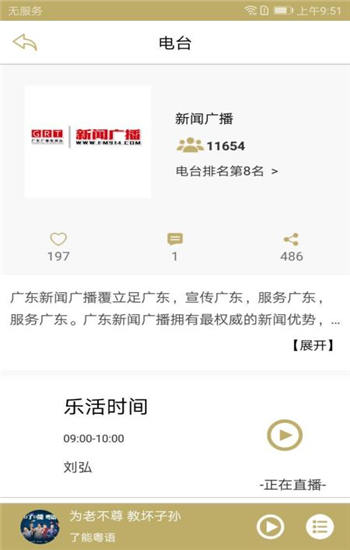 2. 自己喜欢的电台可以通过一键收藏的方式进行收藏,下次再寻找的时候就更加的方便,每一个广播节目都有非常详细的介绍,用户在收听的时候可以查看这些介绍,进行一个更加详细的了解;